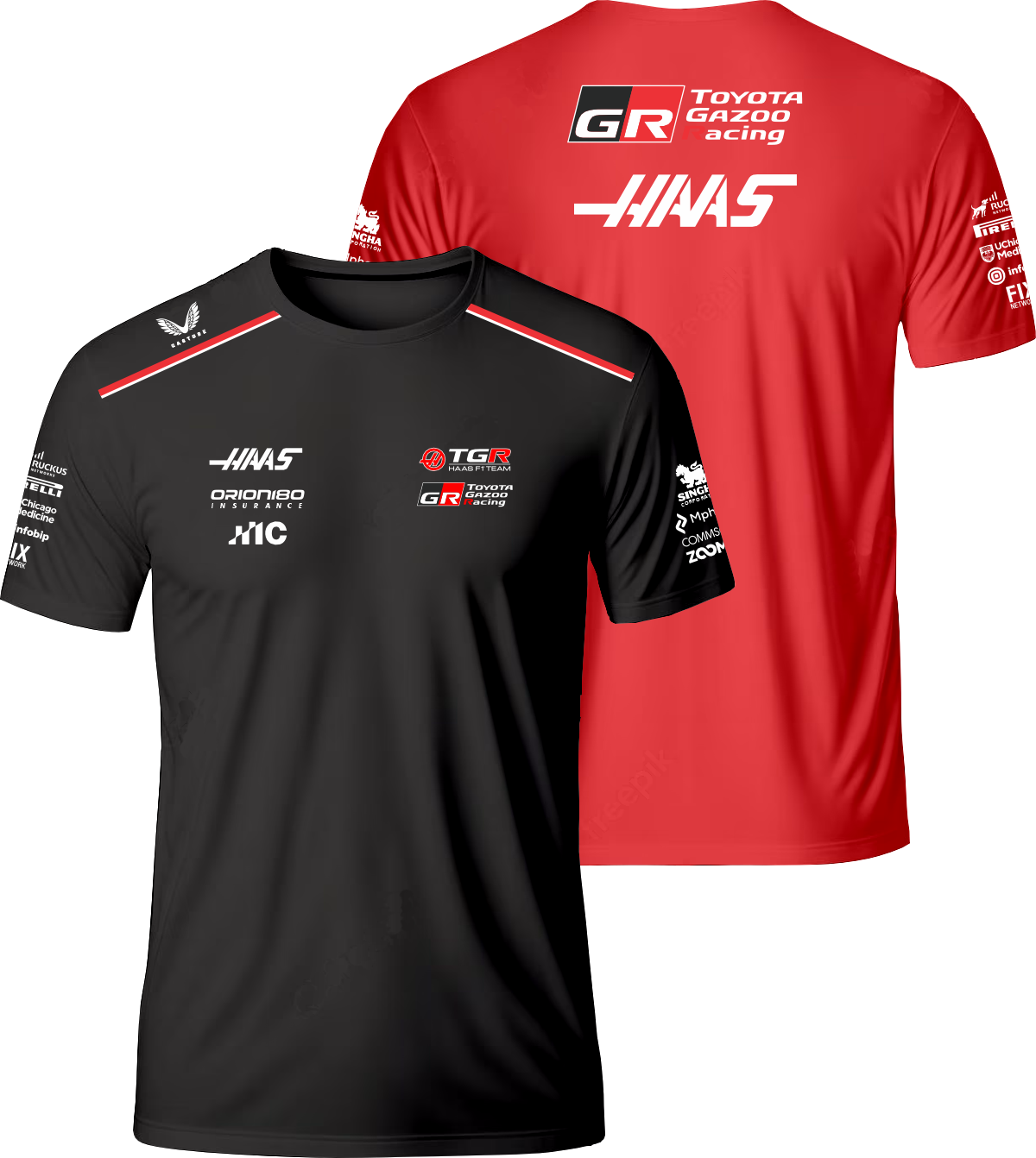 Camiseta Equipe Haas F1 2026, malha 100% algodão premium ou DriFit com Proteção Uv50+, você escolhe! Tecidos de primeiríssima qualidade, toque muito agradável, muito macia. Decote redondo. Manga Curta Costuras Reforçadas. Costura duplas nos ombros e golas